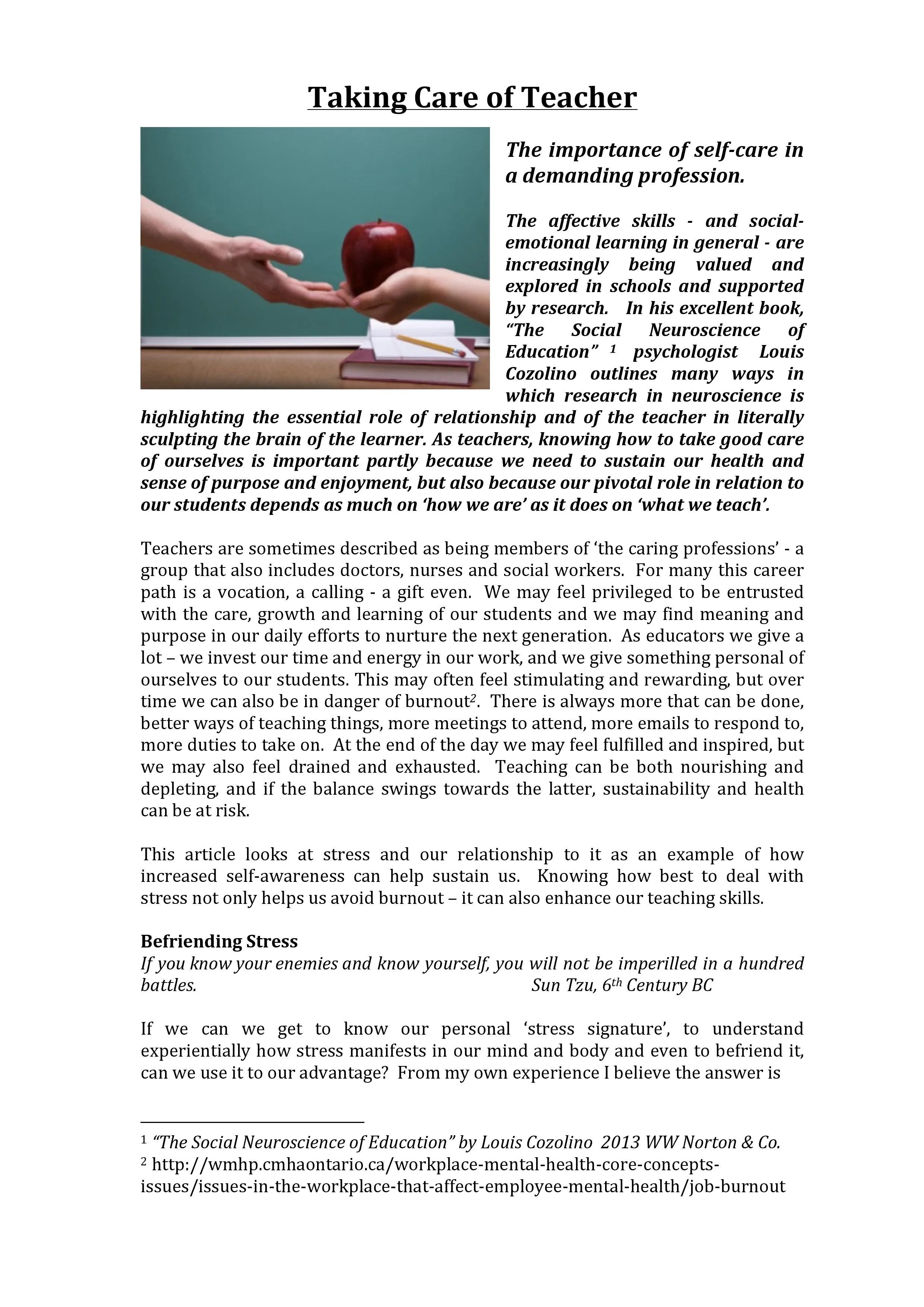 The training is designed with education staff in mind, and the particular challenges they may be familiar with working in educational settings. It offers an alternative to traditional Mindfulness-based Stress Reduction (MBSR) and Mindfulness-based Cognitive Therapy (MBCT) courses, with shorter sessions and home practice designed to be accessible for busy educational staff.
